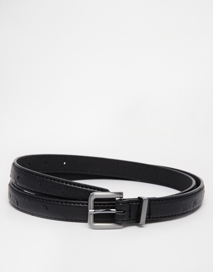 ASOS - Ceinture habillée en similicuir effet autruche - Noir - Noir