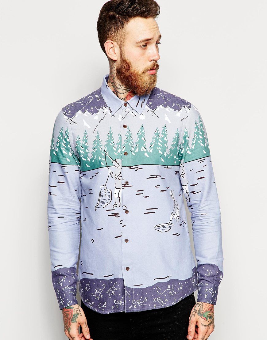 • ASOS - Chemise de Noël manches longues à imprimé pêche façon esquimau - Bleu