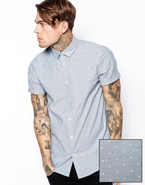 ASOS - Chemise élégante à manches courtes avec chambray à pois - Bleu