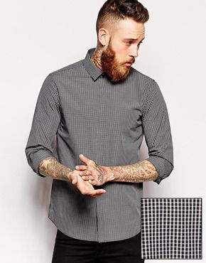 • ASOS - Chemise élégante à manches longues avec carreaux effet ombré et patte de boutonnage dissimulée - Noir