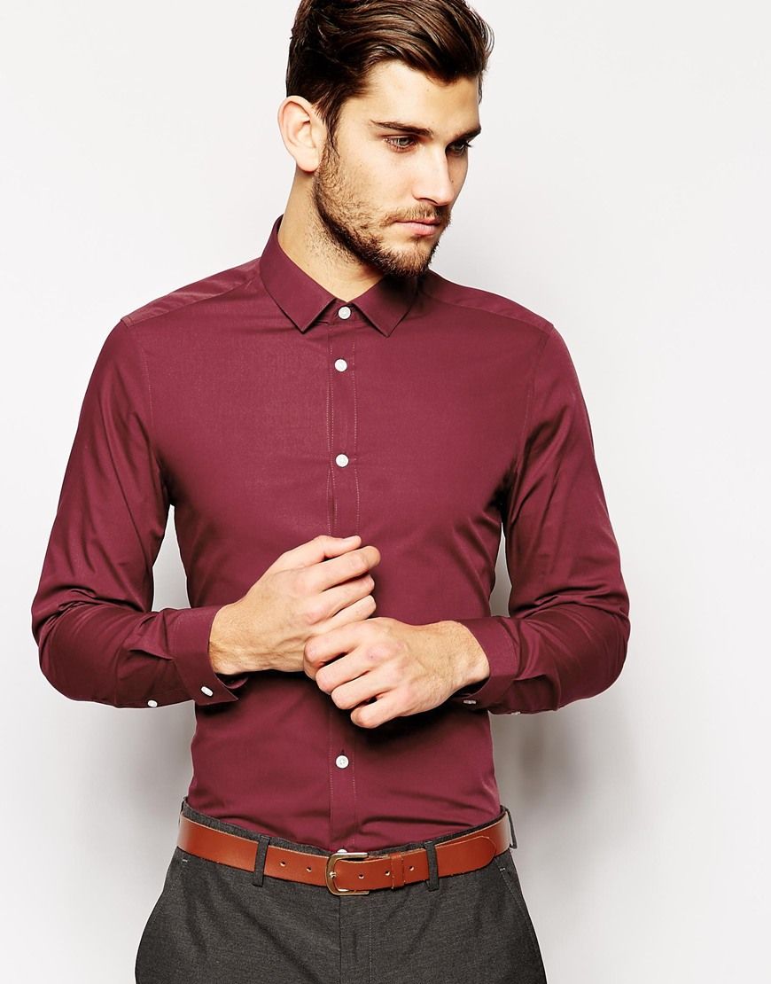 • ASOS - Chemise élégante à manches longues - Bordeaux