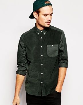 • ASOS - Chemise en sergĂ© Ă  manches longues et empiècement en velours cĂ´telĂ© - Vert