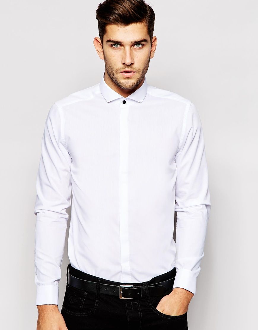 • ASOS - Chemise habillée à col découpé et double manchette - Blanc