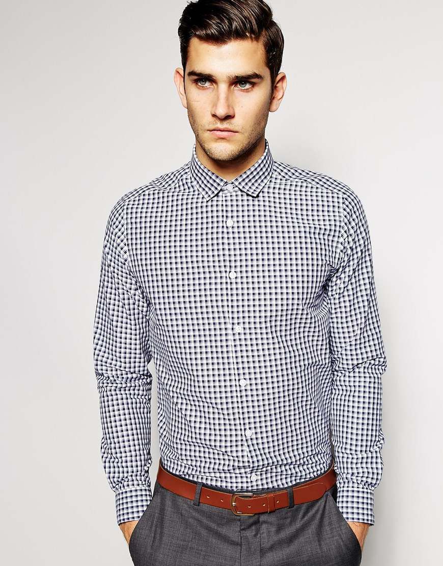 Buy ASOS - Chemise habillée manches longues à, chemise Asos for men on Pickture, in trends like ASOS, Chemise, carreaux, Bleu, marine