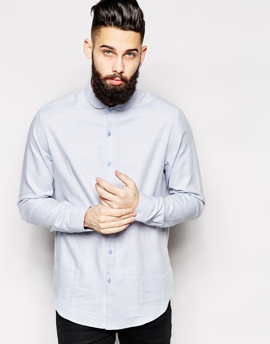• ASOS - Chemise habillée manches longues en sergé avec col incurvé - Bleu