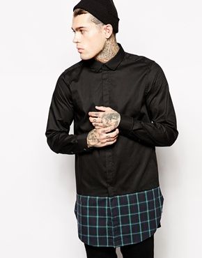 • ASOS - Chemise longue habillée à carreaux écossais à l'ourlet - Noir