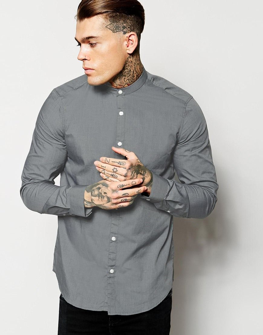 Buy ASOS - Chemise manches longues à col grand-père, chemise Asos for men on Pickture, in trends like ASOS, Chemise, Gris