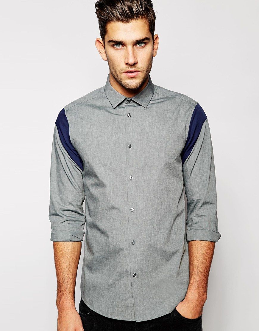 ASOS - Chemise manches longues avec empiècements aux épaules - Bleu marine