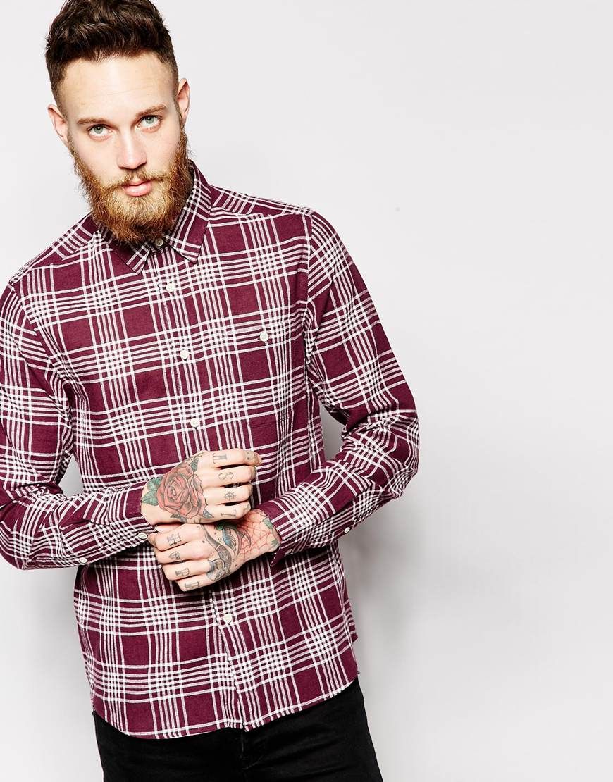 Buy ASOS - Chemise manches longues en lin mélangé, chemise Asos for men on Pickture, in trends like ASOS, Chemise, lin, carreaux, Bordeaux