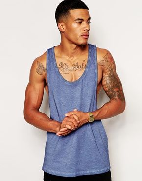 • ASOS - DĂ©bardeur dĂ©lavĂ© effet huilĂ© et dos nageur ultra Ă©chancrĂ© - Bleu
