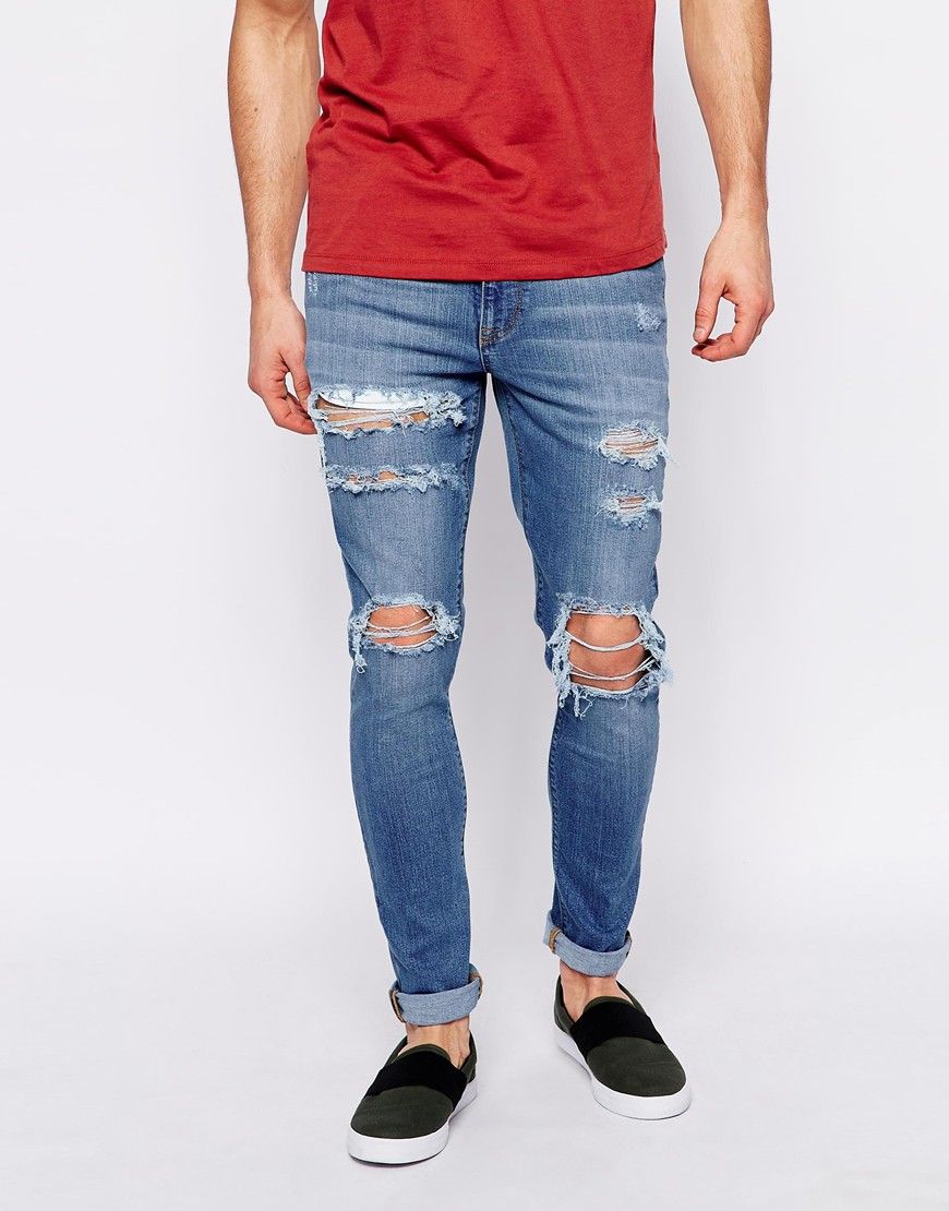 Buy ASOS - Jean super skinny et ultra déchiré, jean Asos for men on Pickture, in trends like ASOS, Jean, skinny, Bleu
