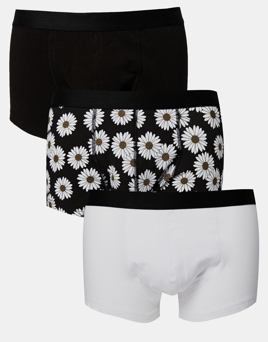 • ASOS - Lot de 3 boxers taille basse avec imprimé marguerites ÉCONOMIE DE 20% - Noir