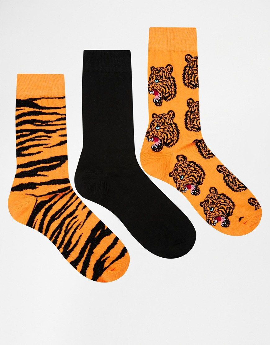 ASOS - Lot de 3 paires de chaussettes motif tigre - Multi