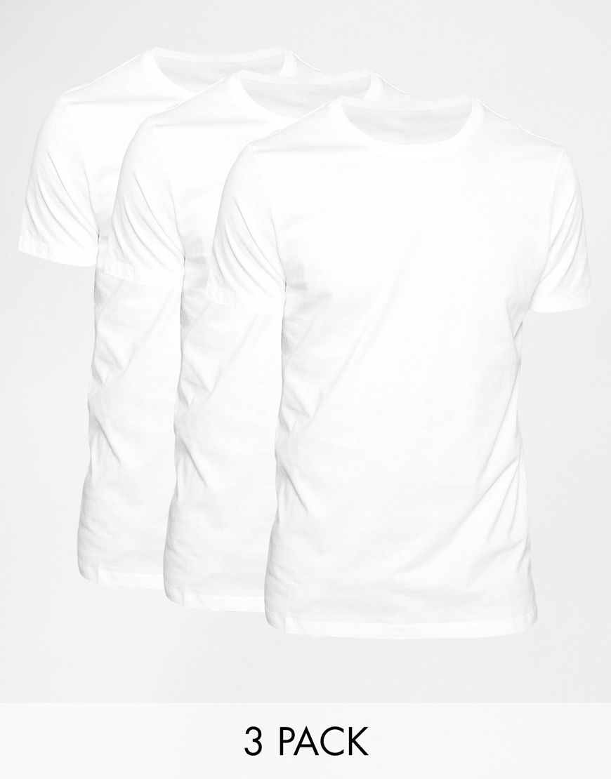 ASOS - Lot de 3 t-shirts cintrés à col ras du cou - ÉCONOMIE DE 22% - Blanc