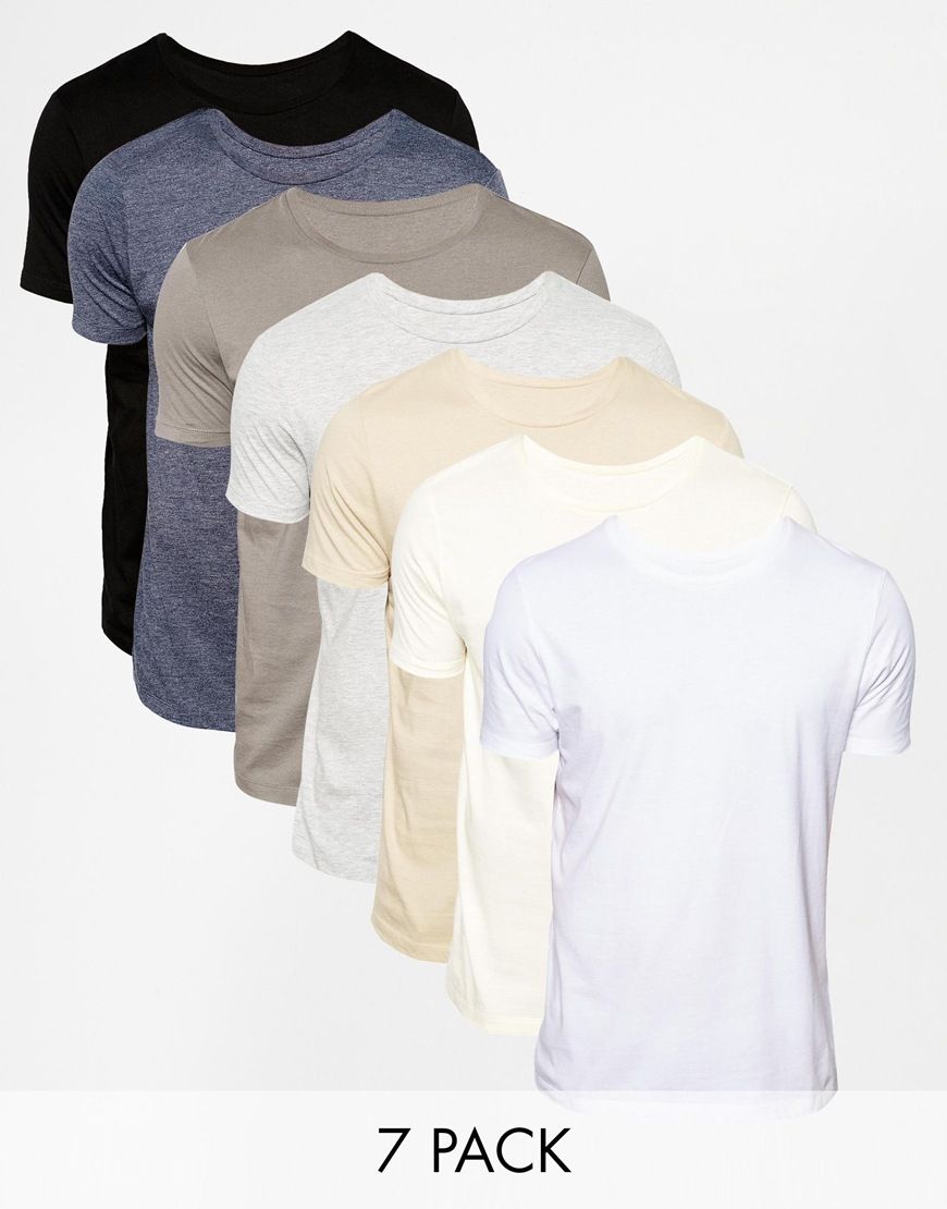 • ASOS - Lot de 7 t-shirts cintrés à col ras du cou - Économie de 29%