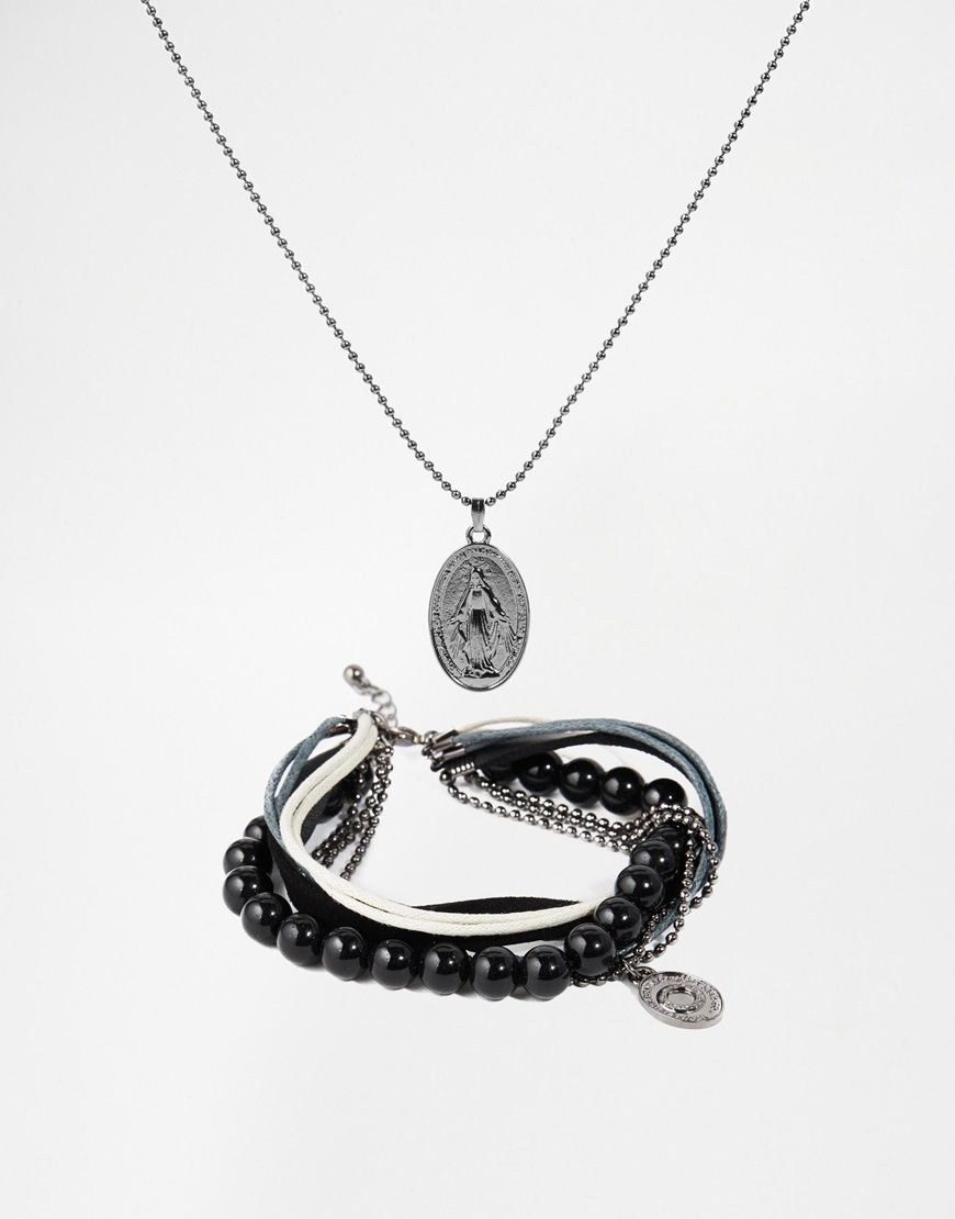 • ASOS Necklace And Bracelet Pack In Black With Coin Charm - Multi
