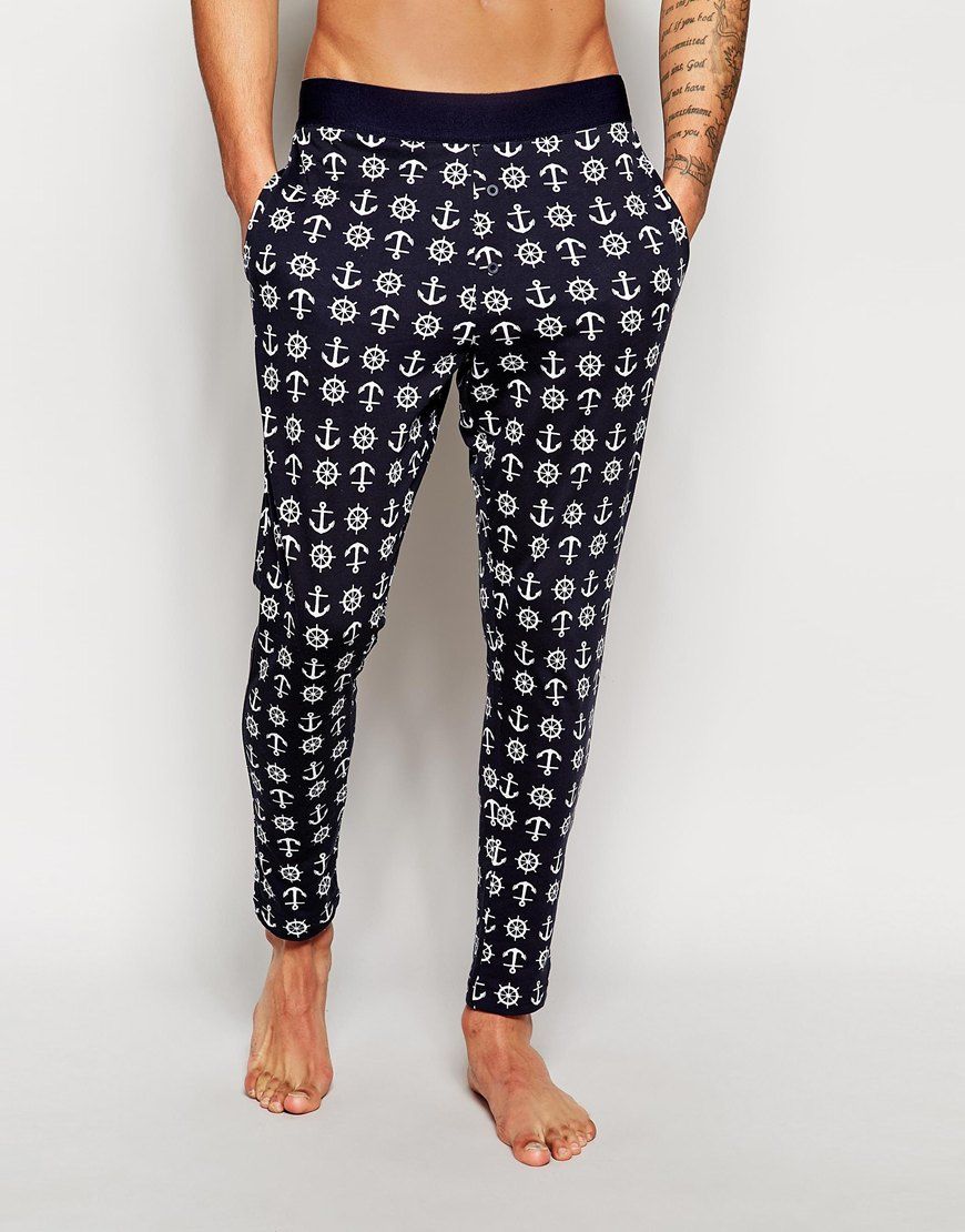 ASOS - Pantalon confort à imprimé ancres - Bleu marine