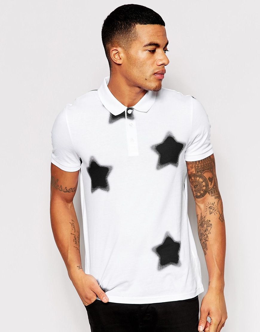 • ASOS - Polo à imprimé étoile déstructuré - Blanc