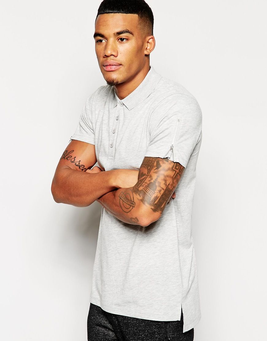 • ASOS - Polo long avec manches zippĂ©es et ourlet plongeant - Gris chinĂ©