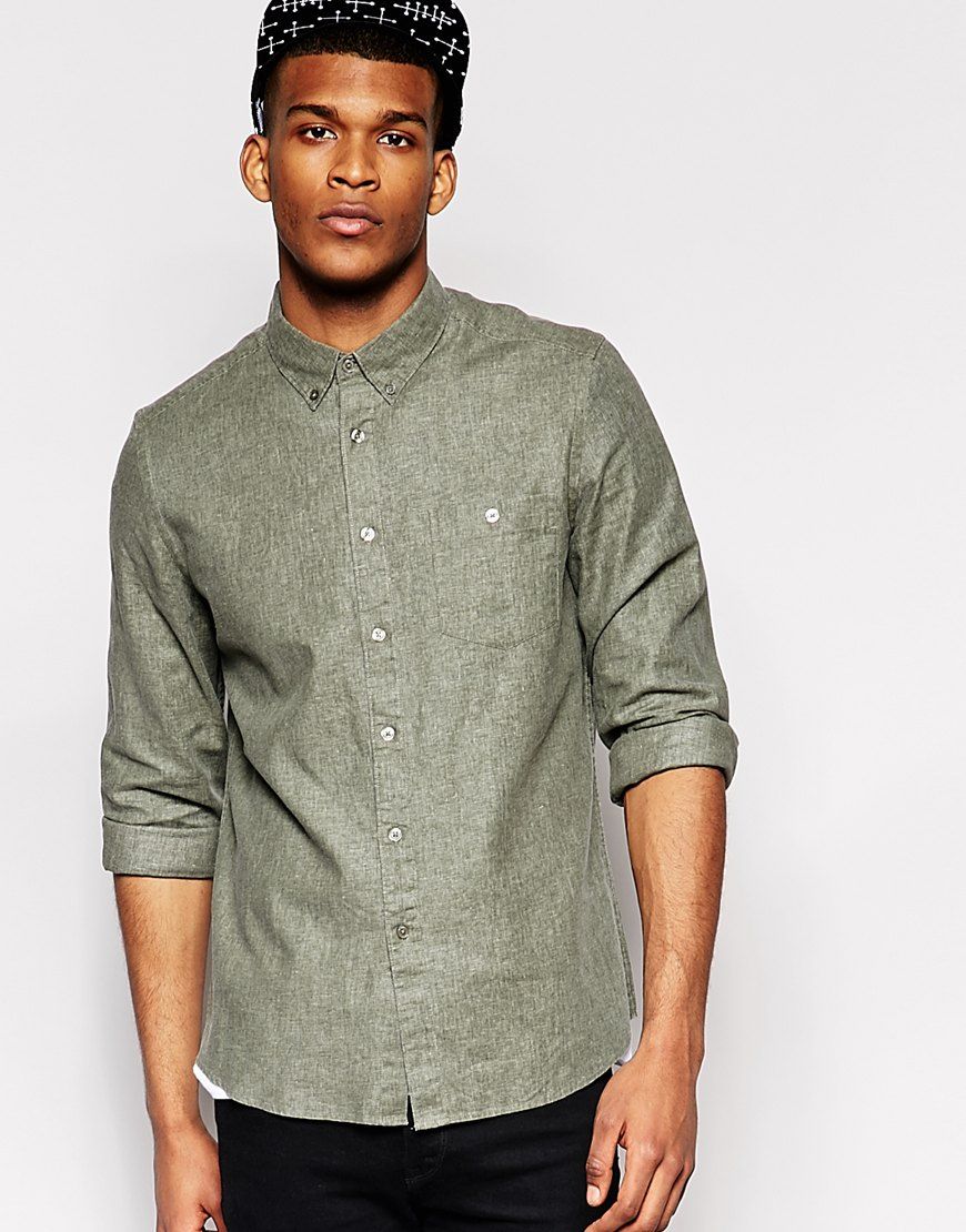 • ASOS Shirt In Viscose Linen Mix With Long Sleeve - Vert
