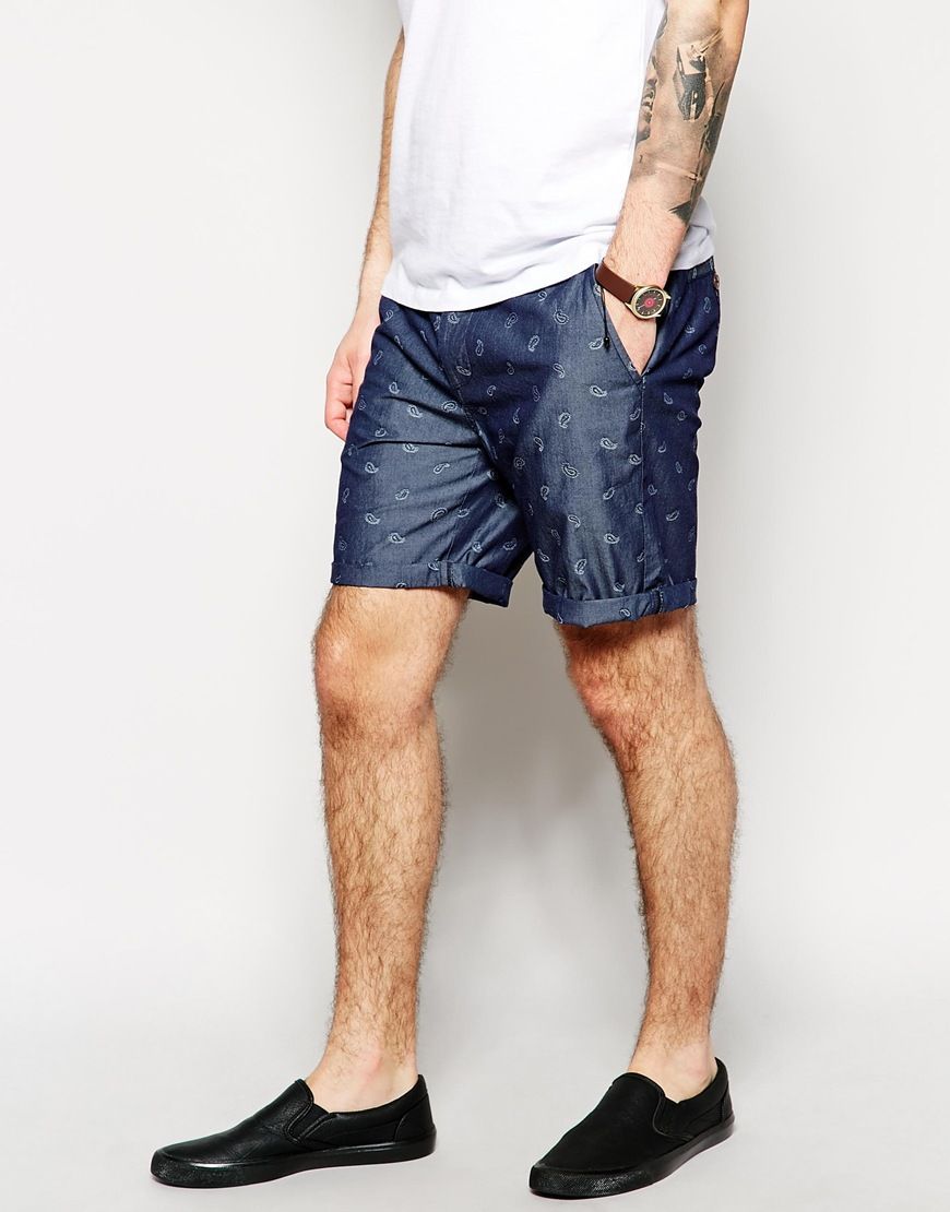 ASOS - Short chino en chambray imprimé cachemire - Bleu