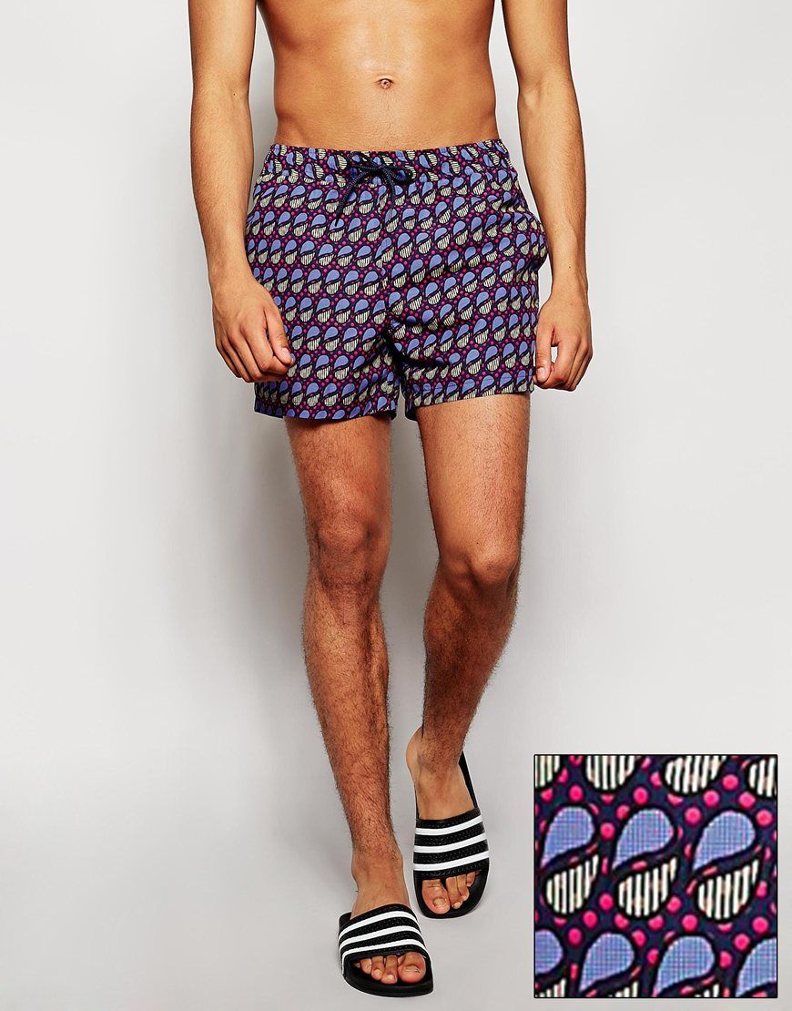• ASOS - Short de bain coupe courte à imprimé géométrique - Bleu