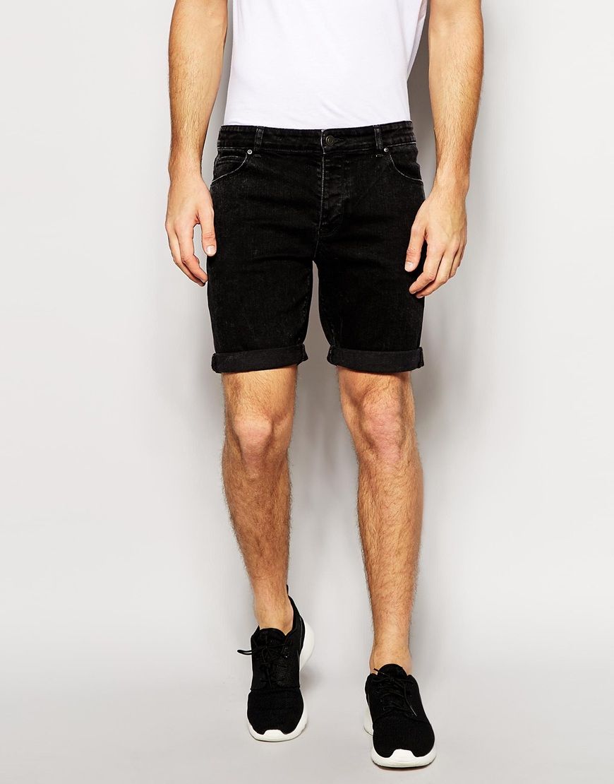 • ASOS - Short en jean skinny - Noir dĂ©lavĂ©