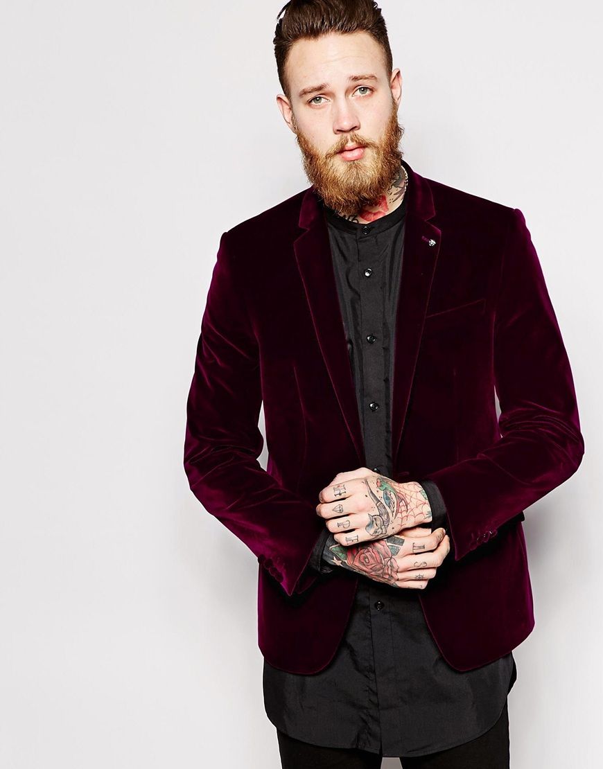 Buy ASOS Skinny Fit Blazer In Velvet - Bordeaux, Asos for men on Pickture, in trends like ASOS, Skinny, Blazer, Velvet, Bordeaux