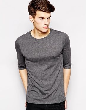 • ASOS - T-shirt à col ras du cou et manches 3/4 - Gris anthracite chiné