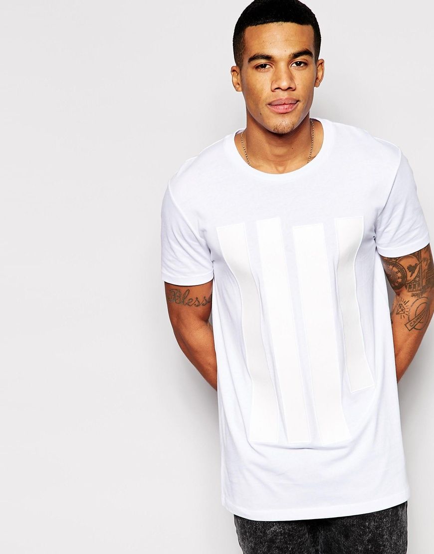 • ASOS - T-shirt coupe skateur décontractée avec empiècements appliqués en similicuir - Blanc