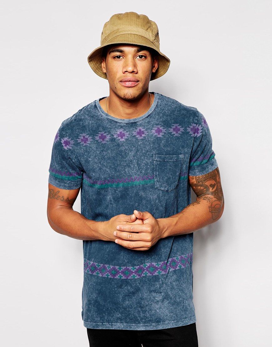 • ASOS - T-shirt délavé à l'acide avec rayures aztèques - Bleu marine