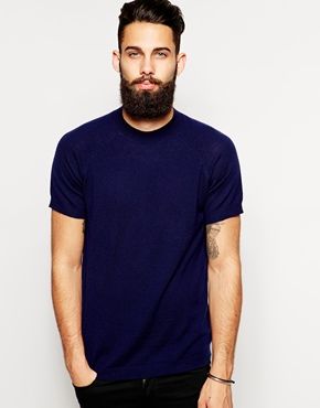 ASOS - T-shirt en maille de laine mérinos - Bleu marine