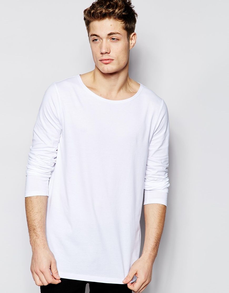 • ASOS - T-shirt long à encolure bateau et manches longues - Blanc