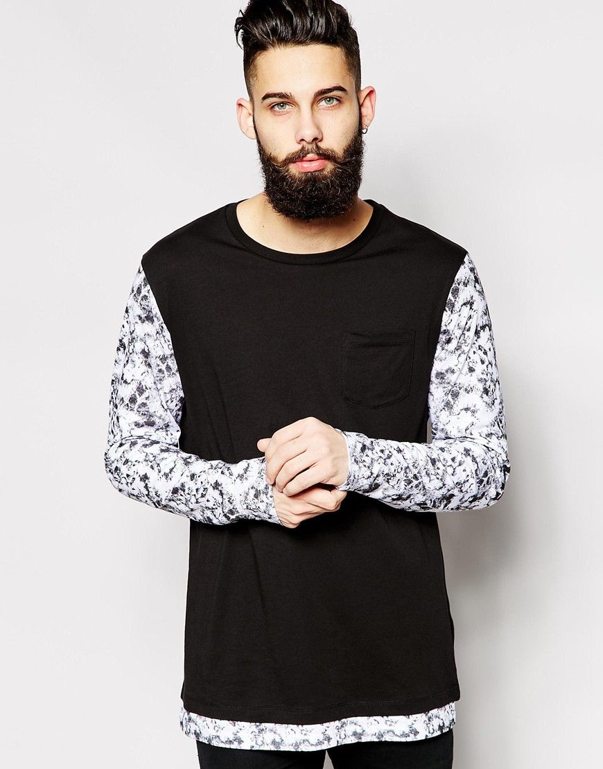 • ASOS - T-shirt long à manches longues marbré effet double épaisseur - Noir