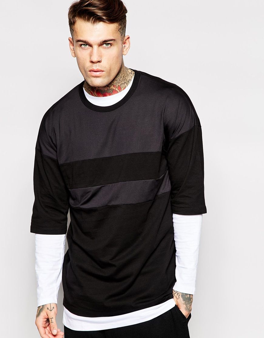 • ASOS - T-shirt long coupe oversize avec empiècement en tricot de polyester - Noir