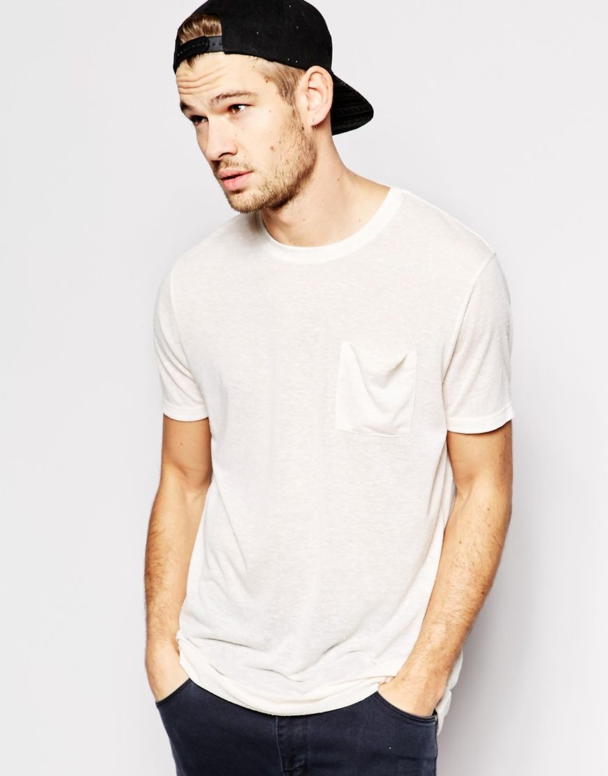 • ASOS - T-shirt long en maille effet moucheté avec poche - Blanc cassé