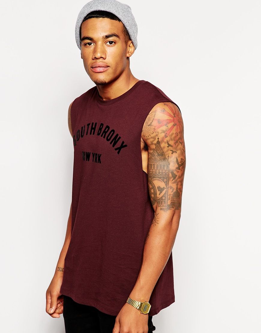 Buy ASOS - T-shirt sans manches à imprimé floqué, t-shirt Asos for men on Pickture, in trends like ASOS, Bordeaux