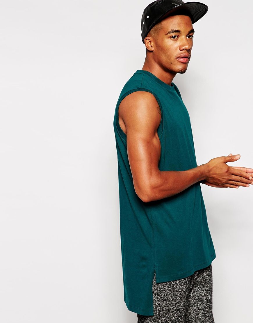 • ASOS - T-shirt sans manches coupe oversize ultra longue avec ourlet asymétrique - Teal