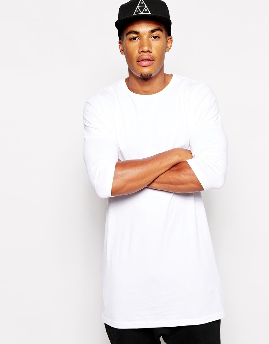 ASOS - T-shirt ultra long à manches 3/4 - Blanc