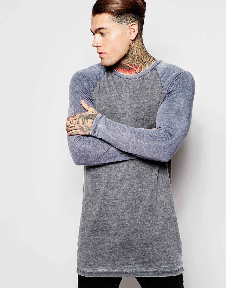 • ASOS - T-shirt ultra long à manches longues en tissu dévoré