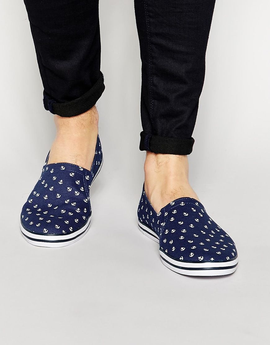 • ASOS - Tennis à enfiler avec imprimé ancres - Bleu marine