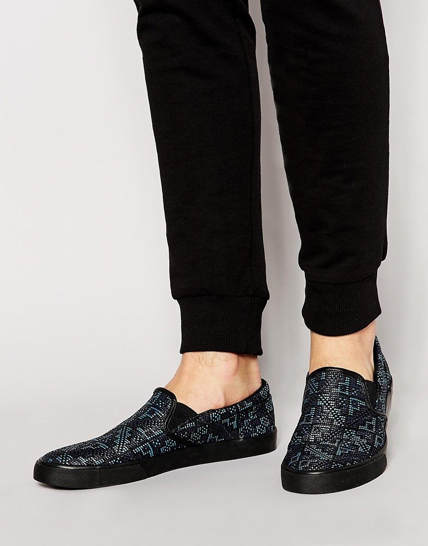 Buy ASOS - Tennis à enfiler avec imprimé aztèque, Asos for men on Pickture, in trends like ASOS, Tennis, Bleu