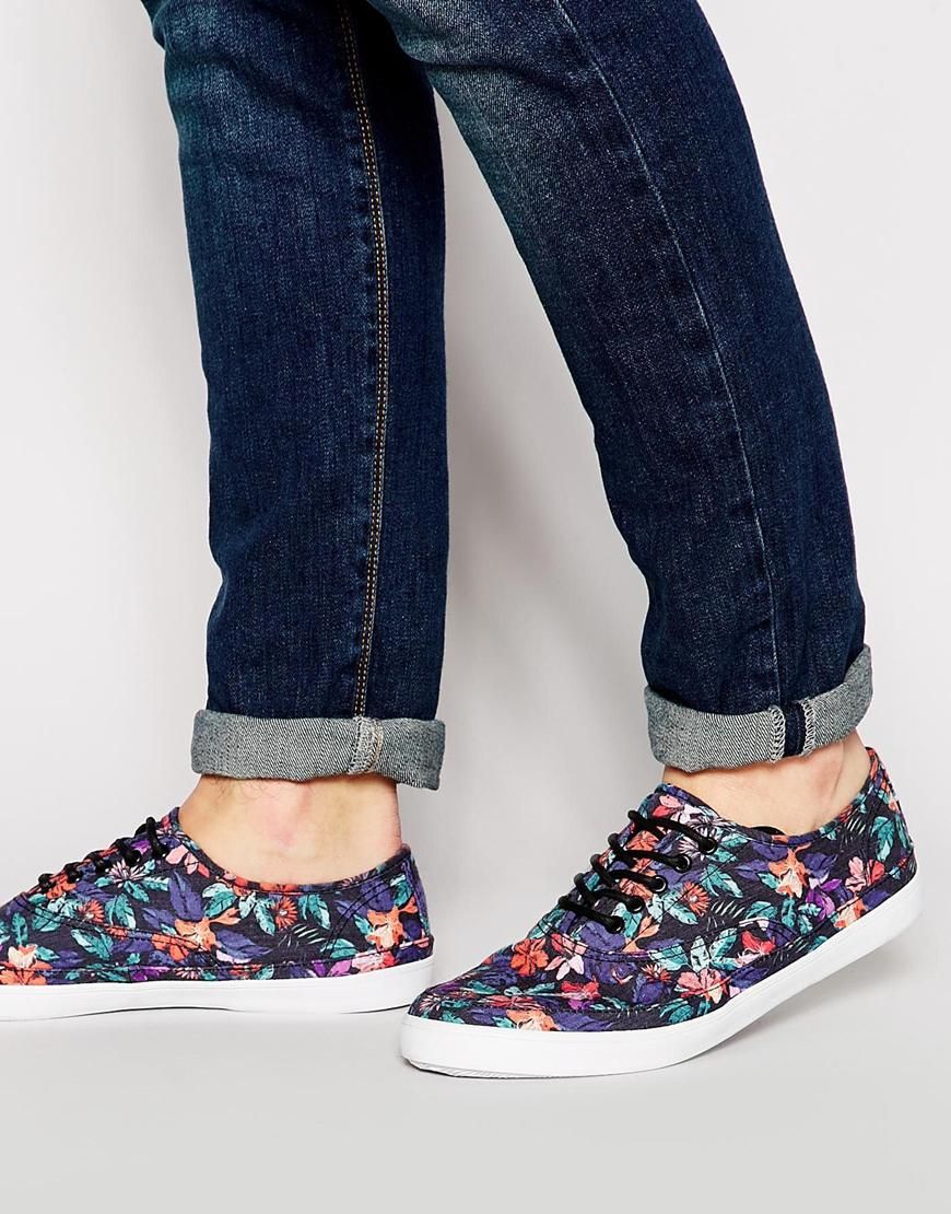 ASOS - Tennis imprimées à fleurs - Bleu marine