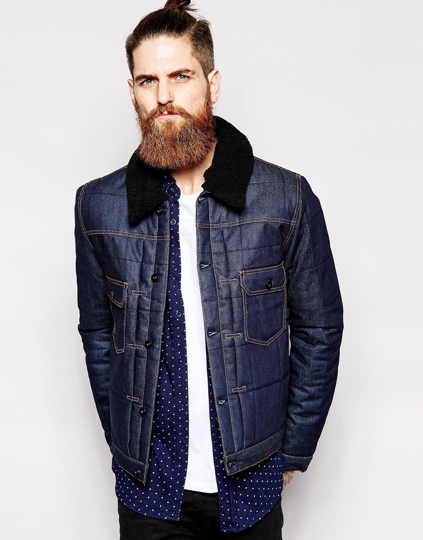 ASOS - Veste en jean avec matelassage - Bleu marine
