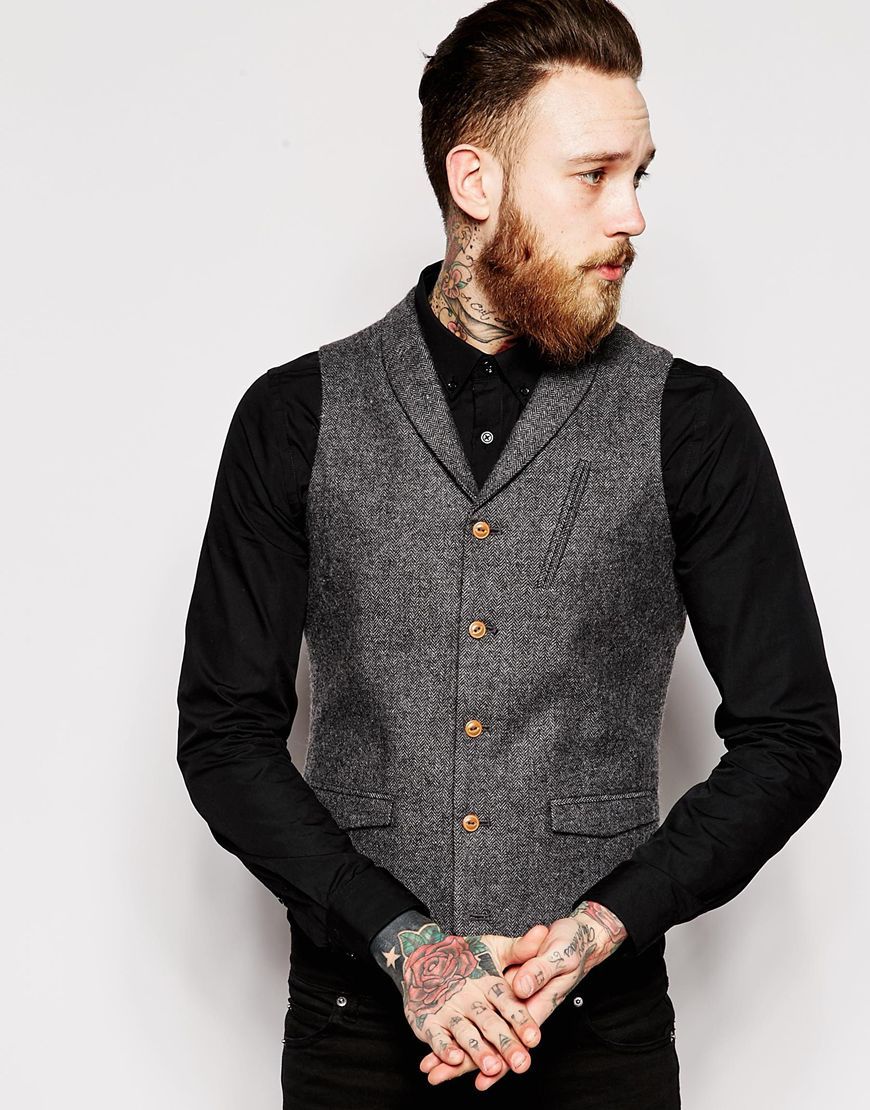 • ASOS - Veston cintrĂ© Ă  chevrons et col châle - Gris