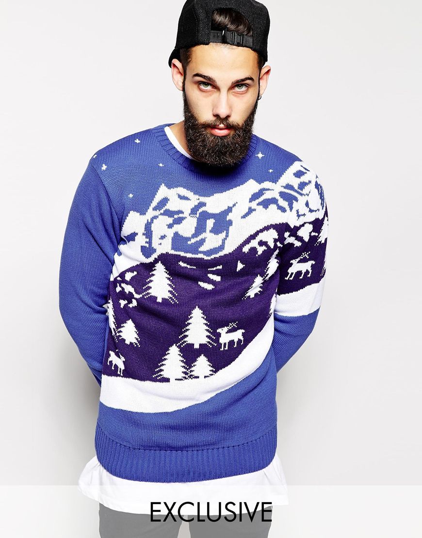 • ASOS Vintage - Pull de Noël à motif paysage de ski rétro - Bleu