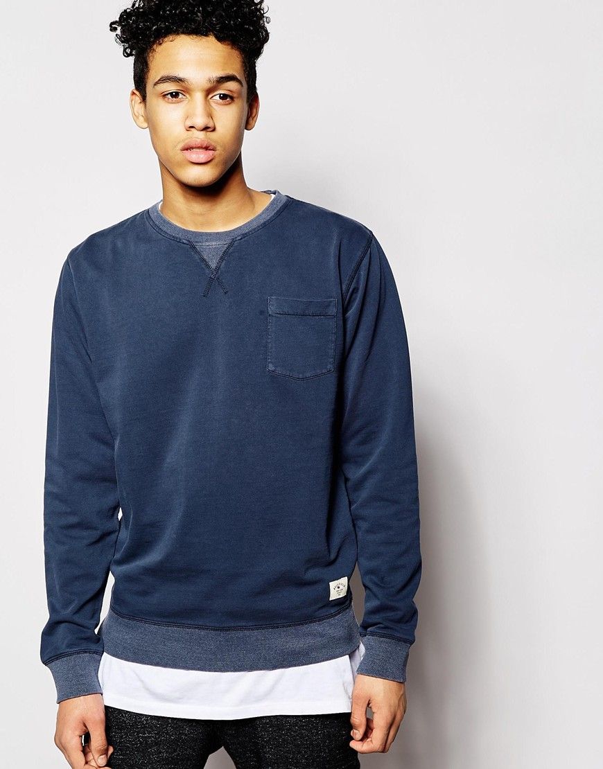 • Bellfield - Sweat dĂ©lavĂ© effet huilĂ© - Bleu marine