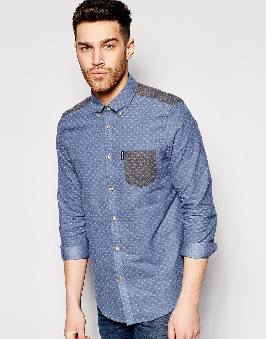 • Ben Sherman - Chemise à manches longues en chambray - Rouge