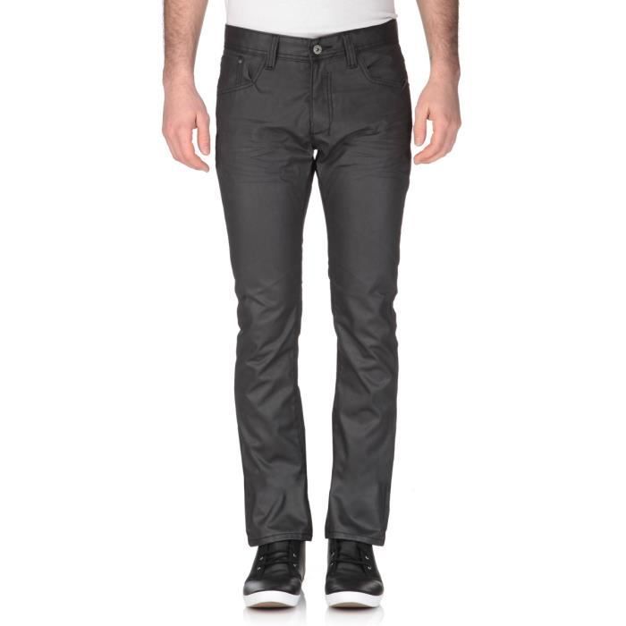 Noir huilé. Denim 100% coton, zip. Jean 5 poches.