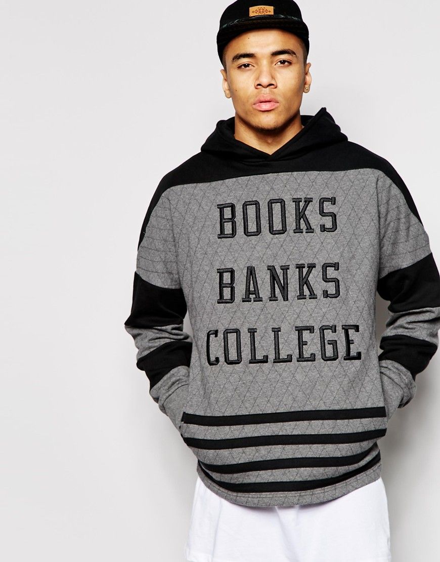• Billionaire Boys Club - Sweat à capuche et rayures style universitaire - Gris